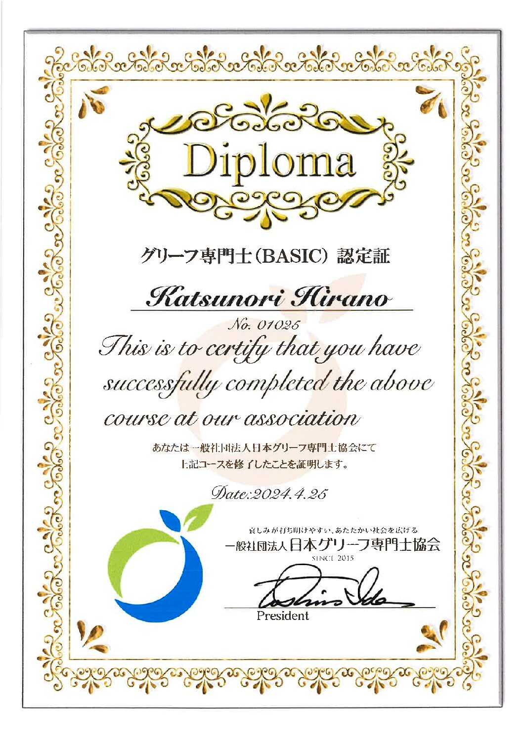「グリーフ専門士」の資格を取得しました | 司法書士平野克典事務所
